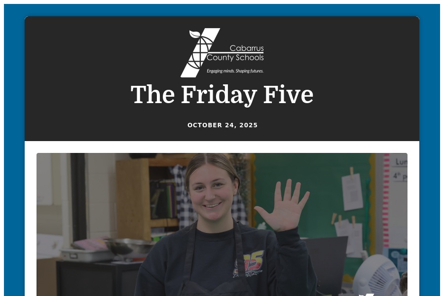The Friday Five October 10, 2025 Happy Friday, Cabarrus County Schools families! It's been a great week! We hope you enjoy the long weekend, and we look forward . . .
