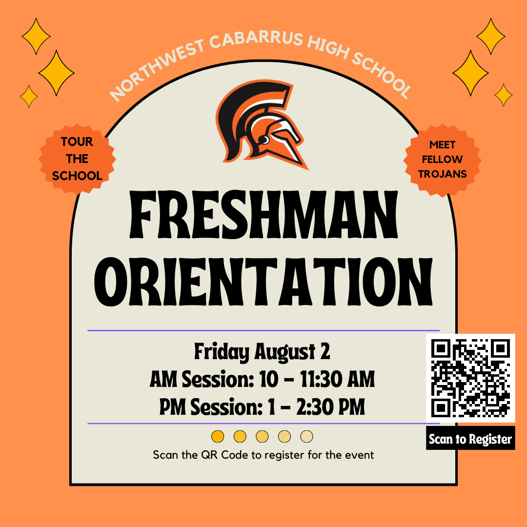 We would like to remind you about our Freshman Orientation on Friday August 2. We are providing two sessions, AM session or PM session, to accommodate all families and your busy summer schedules. Students will have the opportunity to meet the Administrative team at NCHS, learn more about the school, and tour the school with current student leaders. If you haven't done so, please complete the following Google Form to register your student for this wonderful event: https://forms.gle/W9vJE785fxwe9Zop8. This orientation is a drop-off event and designed only for students to attend. Parents will have the opportunity to familiarize themselves with NCHS at Open House on August 7. We look forward to welcoming you to Trojan Nation!